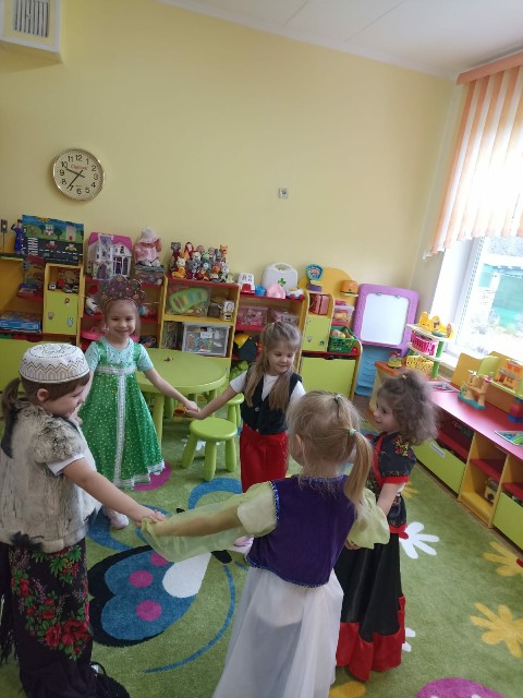 В преддверии праздника в группах корпуса 1112 воспитатели провели тематические мероприятия, направленные на патриотическое воспитание дошкольников, где ребята познакомились с историей возникновения праздника, а также закрепили знания о государственных и неофициальных символах России, прослушали гимн России. Ребята познакомились с народами, населяющими нашу страну, их национальными костюмами и обычаями.
